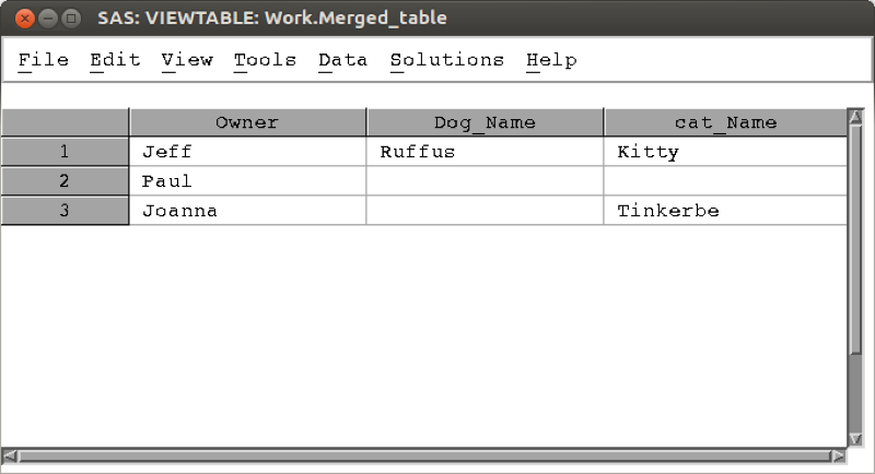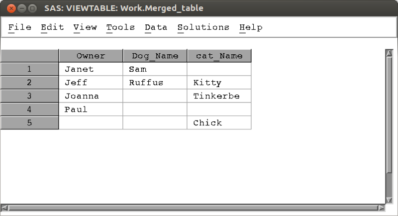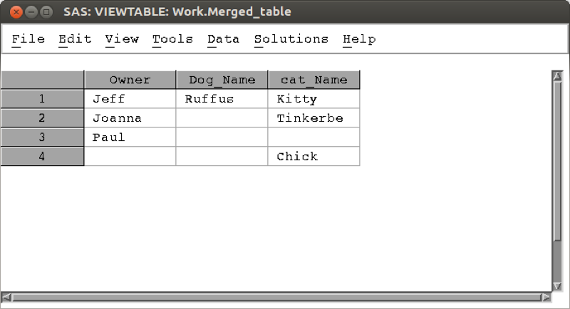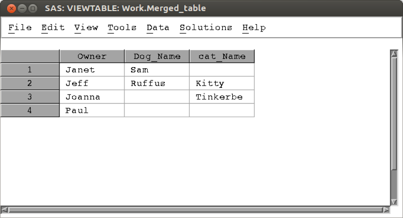 A very common use of SQL within SAS is to carry out "joins" which are equivalent to a merger of data sets. There are 4 types of joins to consider: