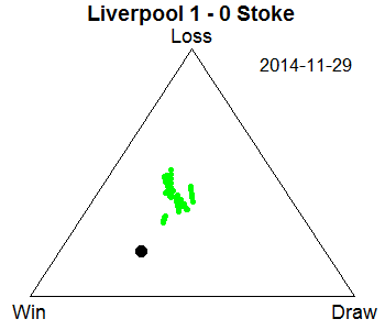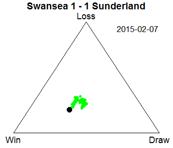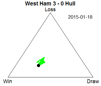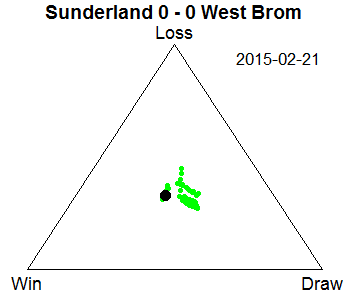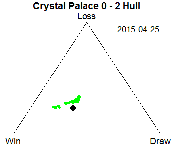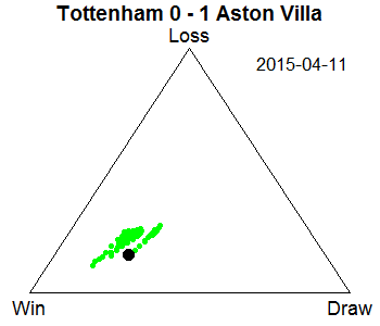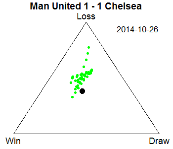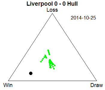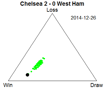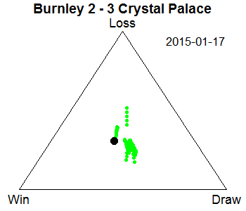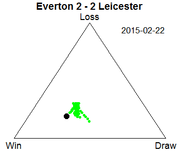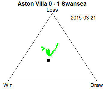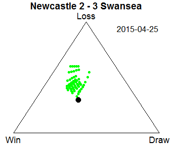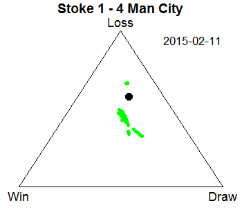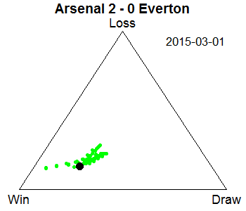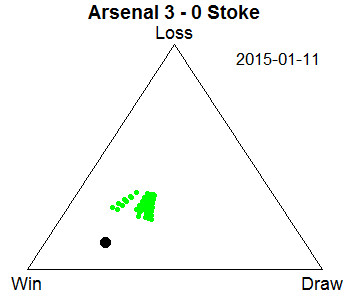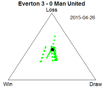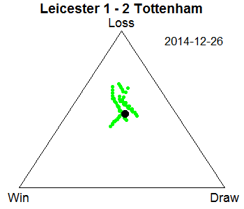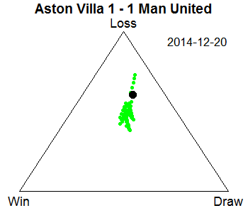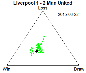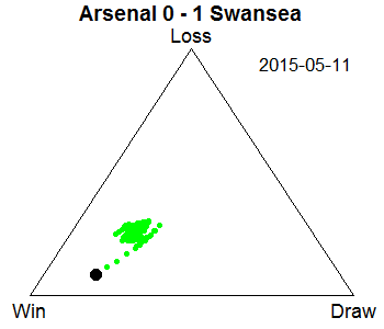 Ternary plots of probabilities estimated from match results and bookmaker's probabilities for Barclays Premier League 2014/15