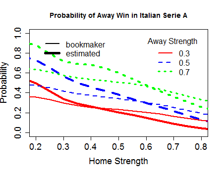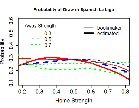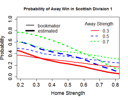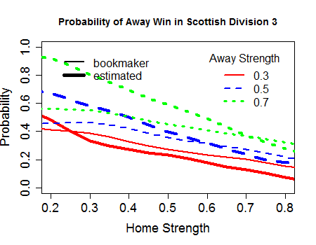 Comparison of probabilities estimated from match results with bookmaker's probabilities